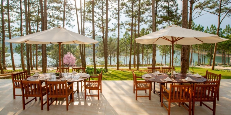 Tận hưởng mỗi buổi sớm bên ly cà phê Đà Lạt chính hiệu, khách có thể phóng tầm mắt ra mặt hồ phẳng lặng, cảm nhận nhịp sống nhẹ nhàng và không khí trong lành len qua từng ô cửa. Đây thực sự là không gian để kết nối yêu thương, lưu giữ những giây phút sum vầy, thư giãn ý nghĩa.