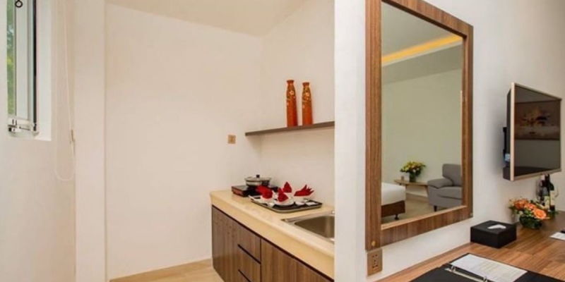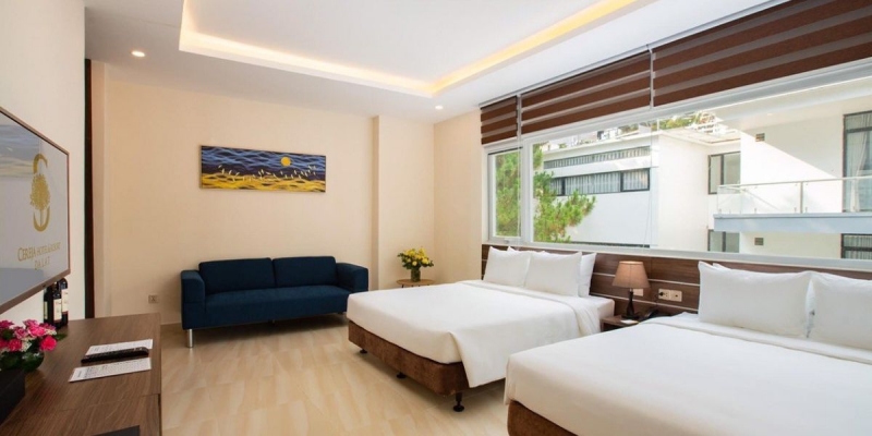 Nội thất tinh tế, hiện đại, kết hợp hài hòa giữa chất liệu gỗ, vải cao cấp, sắc xanh của thiên nhiên thông qua các ban công, khung cửa sổ rộng. Không gian phòng chú trọng sự thoải mái, ấm cúng mà vẫn sang trọng, xứng tầm kỳ nghỉ cho cá nhân, các cặp đôi, hội nhóm hoặc gia đình nhỏ.