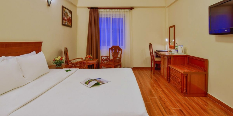 Khách sạn mang phong cách thiết kế trang nhã, tạo nên không gian lưu trú yên tĩnh và ấm cúng. Mỗi góc nhỏ đều được chăm chút nhằm mang đến cảm giác dễ chịu, giúp du khách thư giãn trọn vẹn sau một ngày dạo chơi giữa tiết trời se lạnh đặc trưng của phố núi.