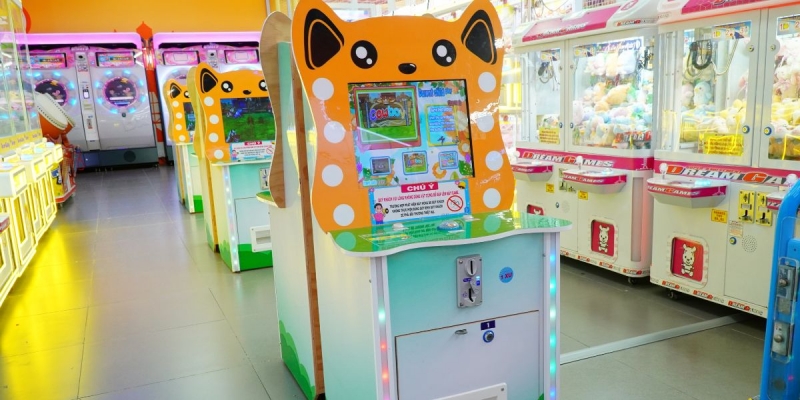 Khu Game bên ngoài với hơn 50 máy gắp thú các loại gấu bông trending, máy chụp ảnh hàn quốc, máy bala bala, máy bắn son, máy trống,... phù hợp với mọi lứa tuổi. Nếu đã thấm mệt với các trò chơi vận động lý thú bé và phụ huynh có thể nghỉ ngơi và tham gia trò chơi hướng nghiệp với đủ loại ngành nghề khác nhau từ giáo viên, bác sĩ, cảnh sát, đầu bếp, nhân viên bán hàng,...