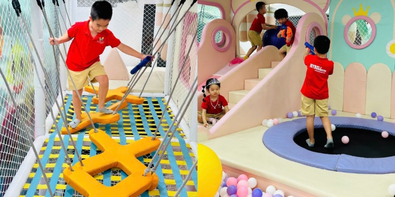 Tại đây, các bé sẽ được thoả sức khám phá sân bóng ngân hà độc đáo, khu leo núi giả đầy thử thách cùng hệ thống trò chơi vận động như cầu trượt, nhà bóng, đường hầm vượt chướng ngại vật… Mỗi khu vực mang lại trải nghiệm riêng biệt, kích thích khả năng vận động, rèn luyện thể lực và tăng cường giao tiếp.