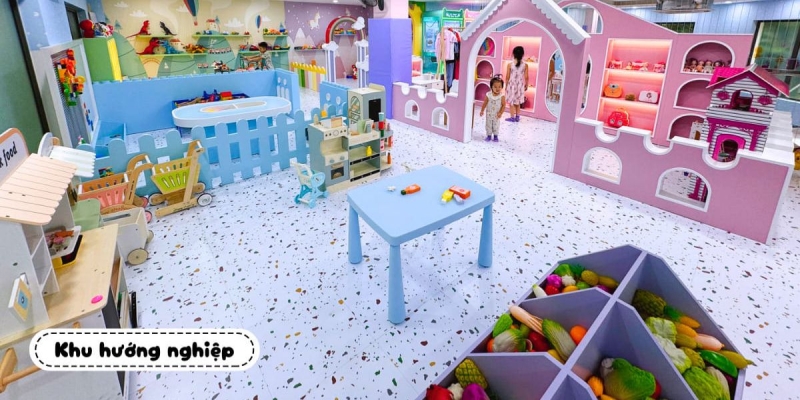 Không chỉ là khu vui chơi, nơi đây còn tích hợp khu cafe, ăn uống với thiết kế hiện đại, đẹp, phù hợp check-in. Đội ngũ nhân viên thân thiện, hỗ trợ nhiệt tình giúp ba mẹ yên tâm khi trẻ trải nghiệm. Không gian vệ sinh sạch sẽ, an toàn và phù hợp tiêu chuẩn khu vui chơi cao cấp.