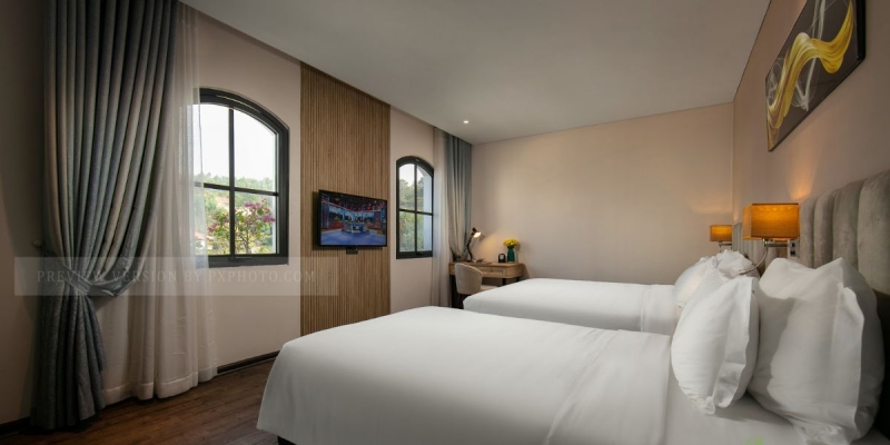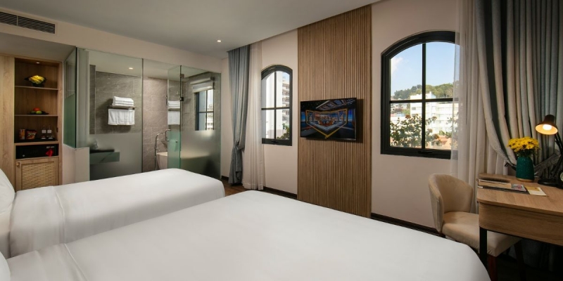 - Hệ thống điều hòa, TV, két sắt, bàn làm việc và nội thất hiện đại, sắp xếp linh hoạt hỗ trợ tối đa mọi trải nghiệm lưu trú.