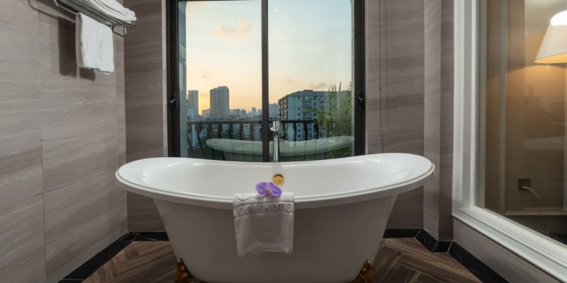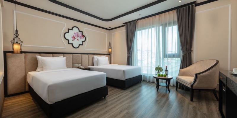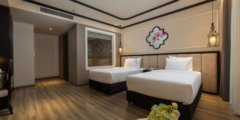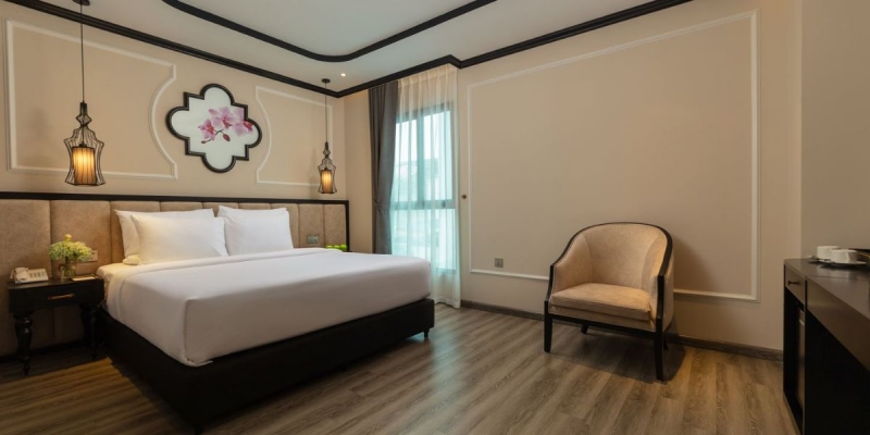 Với 106 phòng nghỉ được thiết kế tinh tế, khách sạn toát lên vẻ sang trọng hiện đại song vẫn giữ nét gần gũi của văn hóa Việt. Không gian khách sạn hài hòa giữa ánh sáng tự nhiên, nội thất tông màu ấm áp, cùng dịch vụ chuyên nghiệp chuẩn 5 sao. Vị trí trung tâm thuận lợi cho di chuyển đến các điểm danh lam thắng cảnh, trung tâm thương mại, hoặc các hội nghị lớn tại khu vực Ba Đình.