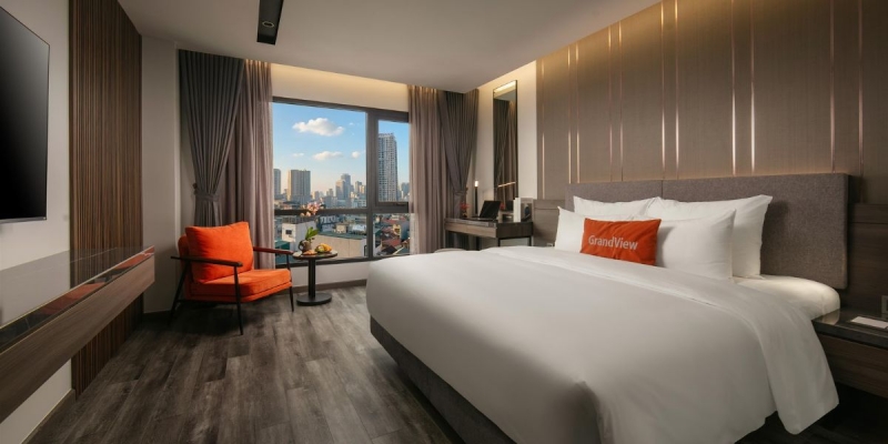 GrandView Hotel & Residence Hà Nội là khách sạn 4 sao hiện đại mới đi vào hoạt động, mang lại những trải nghiệm lưu trú thời thượng, tiện nghi giữa trung tâm Cầu Giấy. Với phong cách thiết kế kết hợp hotel & residence, nơi đây đặc biệt phù hợp cho gia đình, nhóm bạn, khách công tác cần không gian thoải mái, riêng tư.