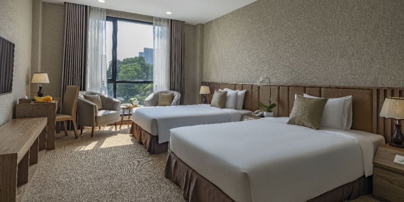 Với những chuyến đi cần sự tiện lợi về vị trí nhưng vẫn đảm bảo không gian nghỉ ngơi thoải mái, Khách sạn Đối Ngoại là một trong những lựa chọn phù hợp ngay trung tâm Hà Nội. Hạng phòng Deluxe Twin mang đến không gian lưu trú rộng rãi, bố trí hai giường đơn, thích hợp cho bạn bè, đồng nghiệp hoặc du khách đi công tác cùng nhau. Thông qua voucher nghỉ dưỡng trên Dealtoday, du khách dễ dàng đặt phòng với mức chi phí hợp lý và chủ động hơn cho lịch trình tại Thủ đô.