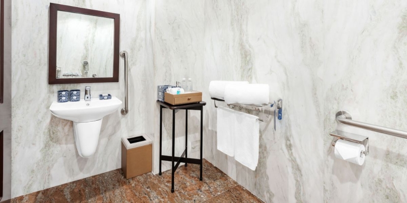 Phòng Wheelchair Friendly King tại resort được thiết kế thân thiện, đáp ứng tiêu chuẩn hiện đại và phù hợp với mọi đối tượng lưu trú, kể cả người khuyết tật hoặc cao tuổi. Không gian rộng rãi, tối giản, chú trọng sự tiện lợi và thoải mái. Một số phòng còn có ban công hoặc view hồ bơi, tạo nên trải nghiệm thư giãn ngay tại phòng.