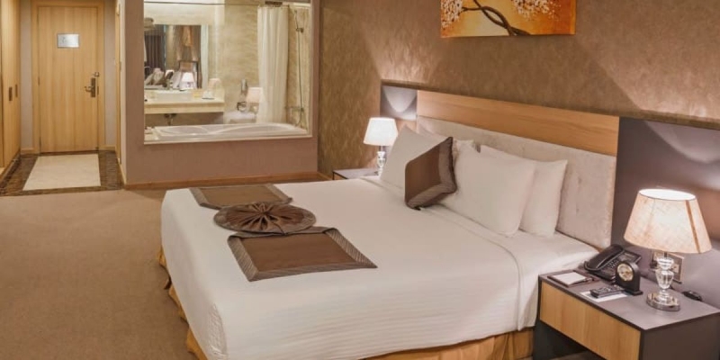 Phòng Deluxe City View tại Mường Thanh Luxury Nha Trang có diện tích 35m², được thiết kế theo phong cách hiện đại, tinh tế, mang đến cảm giác rộng rãi và dễ chịu ngay từ khi bước vào. Không gian phòng được bài trí hài hòa với tông màu trang nhã, kết hợp nội thất cao cấp, tạo nên một nơi nghỉ ngơi lý tưởng sau những giờ phút vui chơi, khám phá thành phố biển.