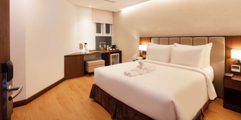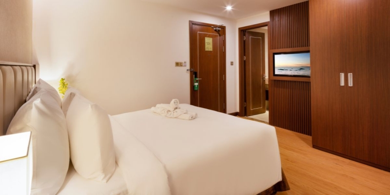 Deal bao gồm 1 đêm nghỉ tại phòng Standard - loại phòng cơ bản nhưng vẫn đầy đủ tiện nghi và tiêu chuẩn 5 sao. Thiết kế hiện đại, không gian vừa đủ thoải mái, phù hợp cho cặp đôi hoặc du khách đi công tác.