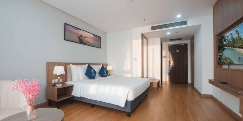 Phòng phù hợp cho các cặp đôi tận hưởng kỳ nghỉ riêng tư, gia đình nhỏ hoặc cả du khách công tác cần không gian yên tĩnh, ngập ánh nắng và gió biển. Đường nét thiết kế hiện đại phối cùng gam màu sáng, nội thất tinh xảo càng tôn lên không gian thoáng đãng chẳng kém resort cao cấp.