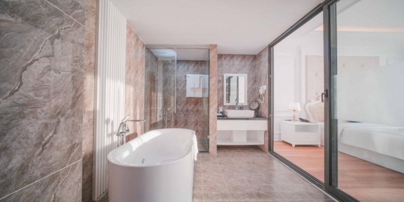 Nằm ở vị trí căn góc, toàn bộ hai mặt kính phòng hướng ra biển xanh lộng gió, giúp khách hàng tận hưởng trọn vẹn tầm nhìn biển tuyệt mỹ suốt ngày dài. Phòng Double với hai lựa chọn phòng tắm - bồn tắm nằm sang trọng hoặc buồng tắm đứng - đáp ứng nhu cầu thư giãn và tiện nghi tối đa cho nhiều đối tượng khách.