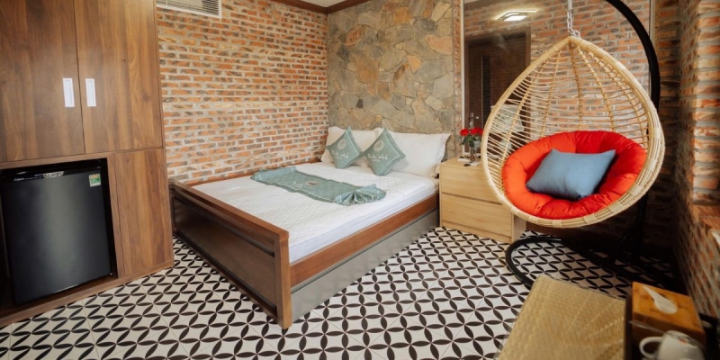 Phòng Double được bố trí gọn gàng, đầy đủ tiện nghi cơ bản, mang lại cảm giác thoải mái sau ngày dài tham quan. Một số phòng có tầm nhìn hướng sân vườn hoặc hồ bơi, tạo không gian thư giãn nhẹ nhàng, gần gũi với thiên nhiên.