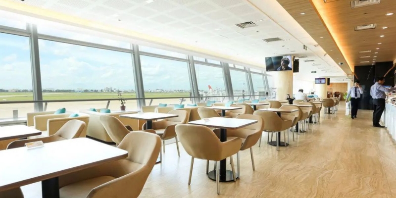 Apricot Lounge sở hữu không gian rộng rãi, thiết kế kết hợp giữa nét sang trọng hiện đại và tinh thần truyền thống Việt Nam. Những hàng ghế sofa êm ái, ánh sáng vàng ấm, điều hòa mát mẻ và cách bố trí thông minh tạo nên môi trường lý tưởng để trẻ em có thể nghỉ ngơi hoặc giải trí an toàn trong khi phụ huynh chuẩn bị cho chuyến bay.