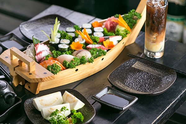 Thực khách sẽ được thoải mái lựa chọn và thưởng thức những món ăn truyền thống, đậm đà bản sắc văn hóa Nhật như: Sushi, Sashimi, Tempura, Sườn bò úc sốt BBQ, Cá hồi nướng Mayo, Ba rọi mỹ sốt BBQ…