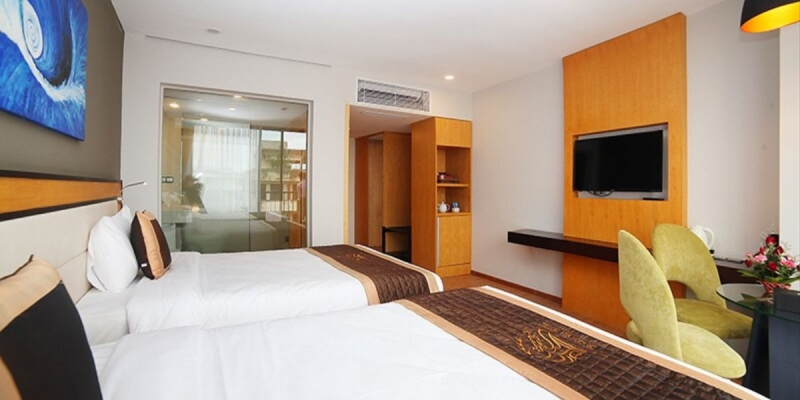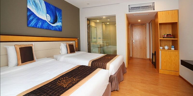 Phòng Superior City View tại Dragon Sea Hotel mang phong cách hiện đại và thanh lịch, phù hợp cho kỳ nghỉ của cặp đôi hoặc cặp khách doanh nhân. Từ ô cửa sổ, bạn có thể phóng tầm mắt ngắm nhìn thành phố sôi động vào chiều tà hay yên ắng lúc sớm mai. Dù không có diện tích cụ thể, nhưng không gian được bố trí hợp lý để đảm bảo sự thoải mái tối đa cho khách lưu trú.