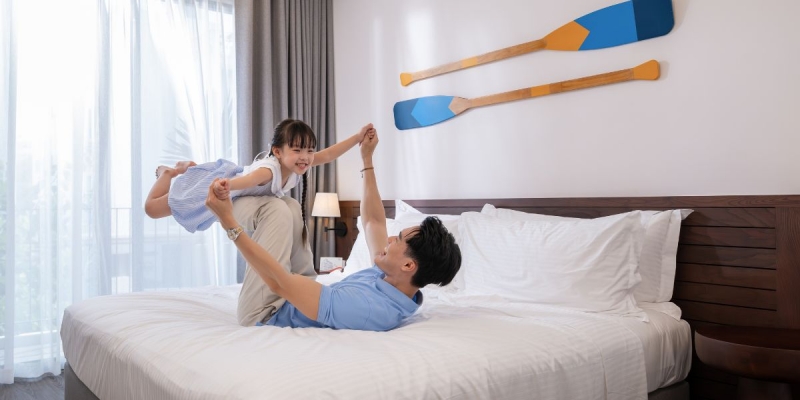 Phòng Deluxe City View tại Lasong Hotel & Villas Sam Son chính là sự giao thoa tuyệt mỹ giữa không gian hiện đại và nét phóng khoáng vùng biển. Từ phòng nghỉ, khách dễ dàng phóng tầm nhìn ra thành phố biển Sầm Sơn đang đổi thay từng ngày, đắm chìm trong ánh sáng tự nhiên, tông màu tinh tế và nội thất lựa chọn tỉ mỉ theo tiêu chuẩn quốc tế. Đây là lựa chọn tuyệt vời để tận hưởng những phút nghỉ ngơi, thư thái sau ngày dài khám phá thành phố, lý tưởng cho các cặp đôi hoặc gia đình trẻ.