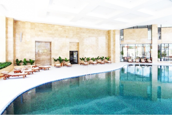 Ngoài ra, du khách có thể thư giãn, đắm mình trong làn nước xanh mát của hồ bơi tại tầng trệt của khách sạn hay tham gia các bài tập thể hình với đầy đủ trang thiết bị hiện đại.