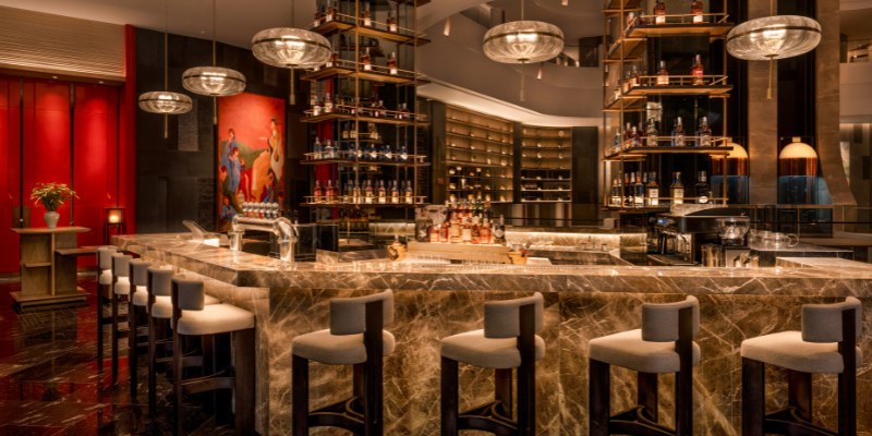 Thiết kế cửa kính suốt từ trần đến sàn mở ra tầm nhìn toàn cảnh thành phố Hà Nội lung linh, đặc biệt rực rỡ khi màn đêm buông xuống. Từng chi tiết được chăm chút tỉ mỉ – từ hoa văn dát vàng, ánh đèn pha lê ấm áp, gạch lát tay thủ công cho đến ban công riêng thanh thoát – tất cả hòa quyện tạo nên cảm giác vừa xa hoa, vừa gần gũi.