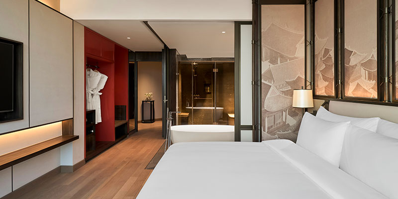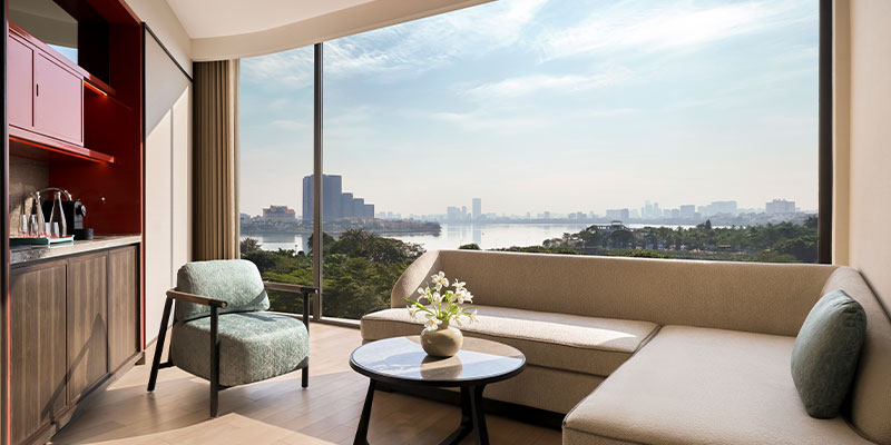 Với diện tích rộng 51 – 64m², hạng phòng 1 Bedroom Balcony Suite là biểu tượng của sự sang trọng thanh lịch. Căn phòng được chia thành phòng ngủ và phòng khách riêng biệt, mang lại không gian riêng tư và thoải mái tuyệt đối.