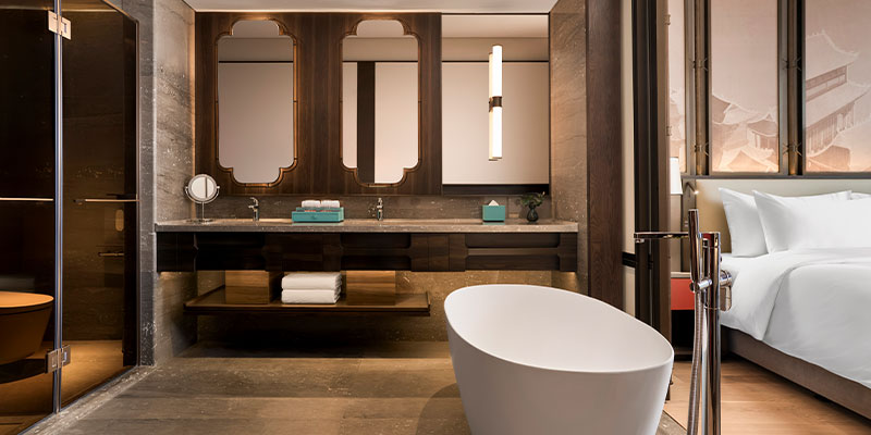 Căn phòng còn được trang bị bồn tắm ngâm thư giãn, giường King Bed êm ái, cùng bếp nhỏ được bài trí chu đáo, giúp bạn tận hưởng cảm giác “an cư” giữa không gian chuẩn 5 sao. Mỗi phút giây nơi đây đều như một nốt nhạc dịu dàng trong bản giao hưởng của sự thư thái và tinh tế.