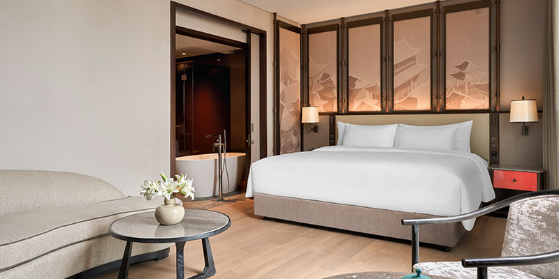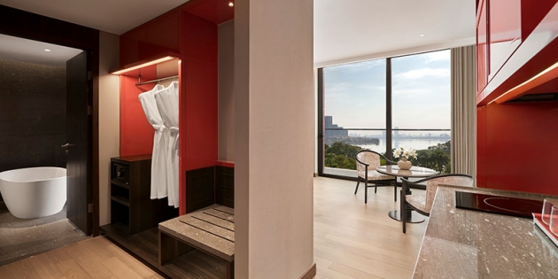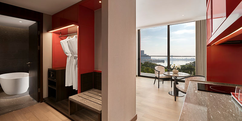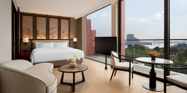 Phòng Deluxe Balcony có diện tích 34 – 43m², được thiết kế rộng rãi, thanh thoát với giường King êm ái, cùng ban công riêng hướng Hồ Tây – nơi ánh bình minh soi chiếu lên mặt nước lấp lánh, và những buổi hoàng hôn nhuộm vàng cả bầu trời Hà Nội.