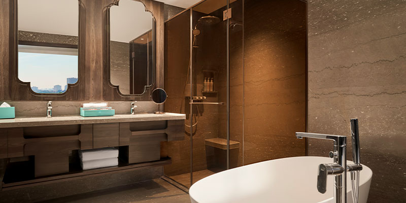 Từng chi tiết trong căn phòng đều được chăm chút tỉ mỉ: hoa văn dát vàng tinh xảo, gạch lát tay thủ công, hệ thống ánh sáng ấm áp và nội thất mang âm hưởng cung đình phương Đông kết hợp kiến trúc Pháp cổ. Tất cả tạo nên một không gian vừa quý phái, vừa lãng mạn – đúng chất “Công chúa Từ Hoa” mà khách sạn hướng đến.