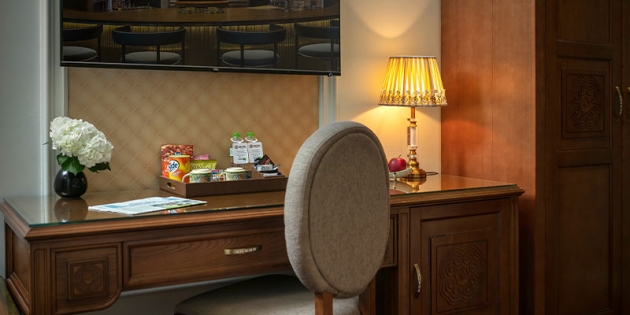 Bước chân vào căn phòng Romance Classic (diện tích 25m²), bạn sẽ ngay lập tức cảm nhận được sự ấm cúng và tinh tế trong từng chi tiết thiết kế. Căn phòng được lát sàn gỗ cao cấp, điểm xuyết bằng tông màu trung tính nhẹ nhàng, mang đến cảm giác thư thái và gần gũi.