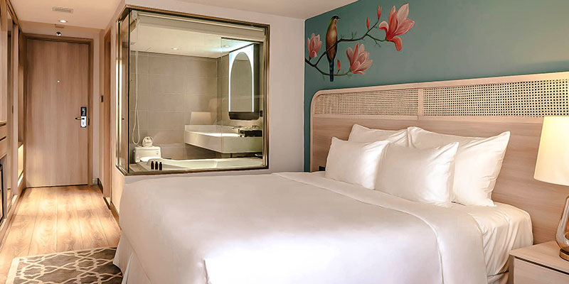 Với diện tích 30m², hạng phòng Deluxe City View được ví như một góc an yên giữa nhịp sống hối hả. Từng chi tiết nội thất được chăm chút khéo léo, hiện đại mà vẫn phảng phất tinh thần nghệ thuật đặc trưng của Le Jardin. Căn phòng trang bị giường Double hoặc Twin, phù hợp cho cả đôi trẻ, nhóm bạn hay khách công tác muốn tận hưởng sự thoải mái.