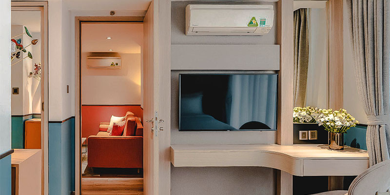 Với 50m², hạng phòng Family Suite mang đến không gian lý tưởng cho gia đình nhỏ hoặc nhóm bạn mong muốn tận hưởng kỳ nghỉ thoải mái, tiện nghi mà vẫn giữ trọn sự riêng tư. Thiết kế phòng thông minh, ấm cúng với gam màu nhẹ nhàng, nội thất sang trọng và cửa sổ rộng mở hướng về City View đầy nhịp sống.