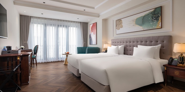 Tông màu nâu trầm và be kem chủ đạo đem lại cảm giác yên bình, giúp du khách thả lỏng mọi giác quan, tận hưởng trọn vẹn từng khoảnh khắc nghỉ ngơi giữa lòng Thủ đô.
