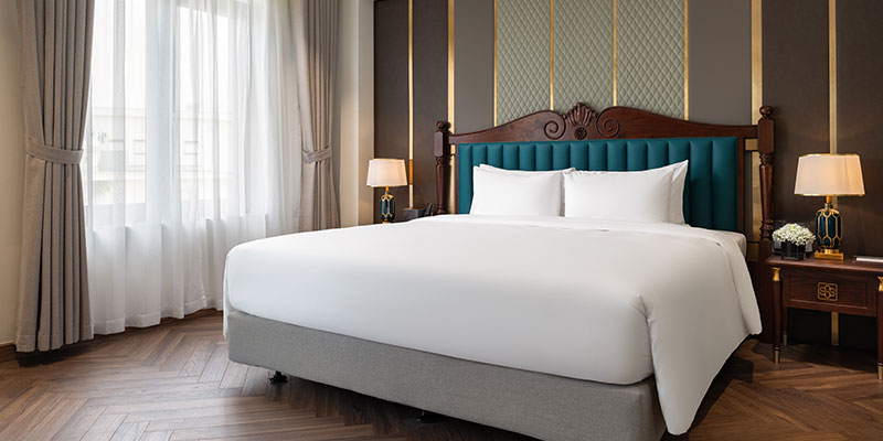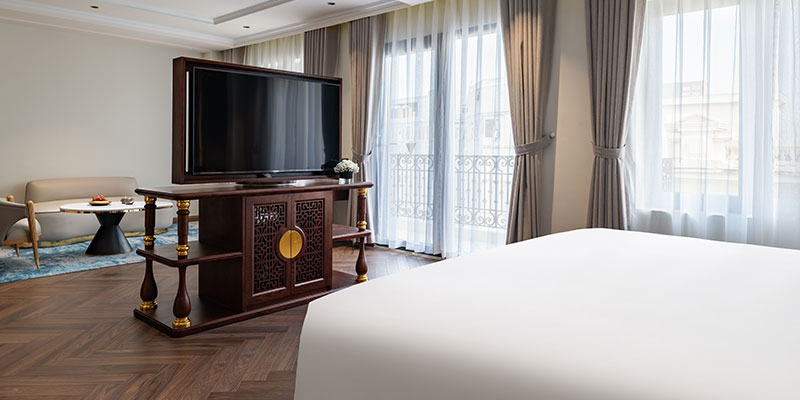 Chiếc giường Double cỡ lớn với chăn ga cao cấp giúp bạn dễ dàng chìm vào giấc ngủ sâu sau một ngày dài khám phá. Cửa sổ lớn và ban công hướng City view hoặc Lake view mở ra khung cảnh tuyệt đẹp – nơi ánh sáng tự nhiên chan hòa khắp không gian, mang đến cho bạn những buổi sớm bình yên hay khoảnh khắc hoàng hôn đầy thơ mộng nhìn về Hồ Hoàn Kiếm.