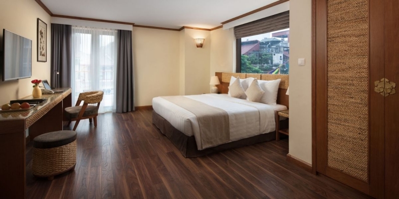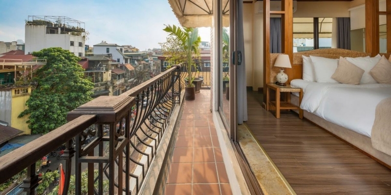 Sở hữu diện tích tới 40m², phòng hạng Premier Balcony với ban công riêng là lựa chọn cao cấp dành cho những vị khách yêu thích sự thoải mái và trọn vẹn. Thiết kế đậm chất boutique, pha trộn khéo léo nét mộc mạc của kiến trúc xưa và nội thất đầy tiện nghi, giúp mỗi khoảnh khắc lưu trú đều trở nên đáng nhớ. Ban công nhìn ra khu phố cổ mang ánh sáng và không khí trong lành tràn ngập căn phòng - nơi lý tưởng để bạn bắt đầu ngày mới hoặc thư giãn khi chiều buông.