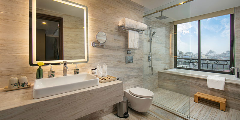 Phòng tắm là một điểm nhấn ấn tượng của căn suite: