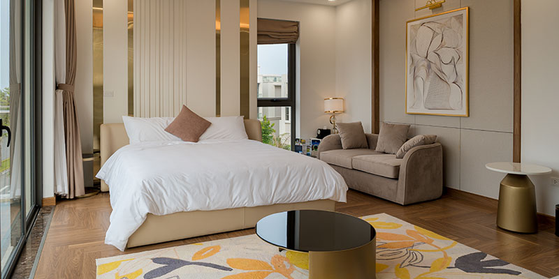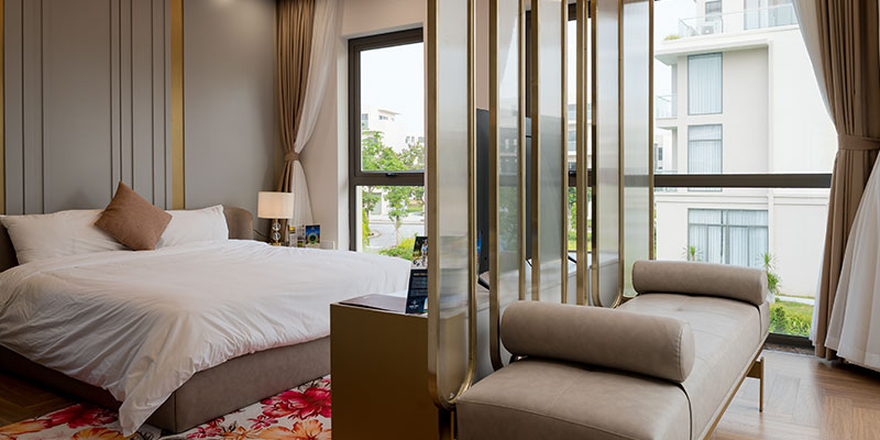 Giữa không gian xanh yên bình của vùng biển Đồ Sơn, Diamond Villa – Ruby Tree Golf Villas hiện lên như một chốn nghỉ dưỡng sang trọng và tách biệt. Biệt thự 4 phòng ngủ rộng 210m² được thiết kế với những đường nét hiện đại, tinh tế, ôm trọn ánh sáng tự nhiên và sắc xanh của biển hồ, sân golf. Đây thực sự là điểm đến lý tưởng cho kỳ nghỉ dưỡng sum vầy bên người thân, bạn bè.