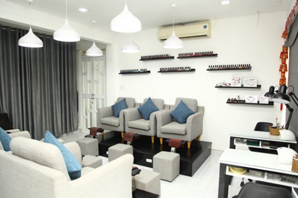 Những bộ bàn ghế làm móng êm ái cùng nhiều kệ gỗ trưng bày các sản phẩm làm đẹp, tạo sự yên tâm, tin tưởng cho bất cứ ai khi sử dụng dịch vụ.