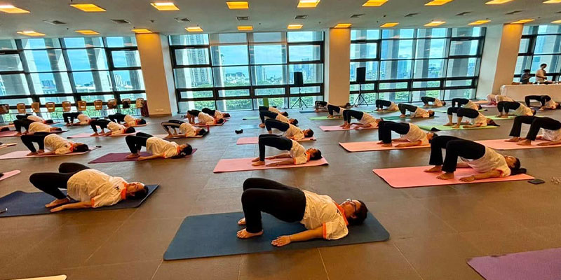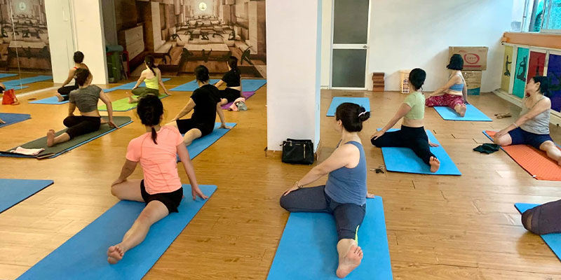 Hệ thống phòng tập tại AD Yoga được trang bị đầy đủ dụng cụ và thiết bị chuyên dụng, đạt chuẩn của một studio yoga chuyên nghiệp. Không gian rộng rãi, thoáng mát, sàn gỗ chất lượng cao và ánh sáng dịu nhẹ giúp học viên dễ dàng tập trung, hòa mình vào từng nhịp thở và động tác.
