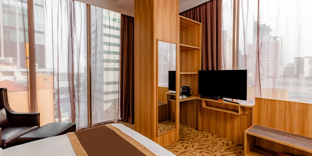 Phòng được trang bị đầy đủ các tiện nghi hiện đại: TV màn hình lớn, bàn làm việc, minibar, điều hòa hiện đại, phòng tắm sang trọng cùng bộ amenities cao cấp… Mọi chi tiết đều được chăm chút để mang đến sự thoải mái tối đa cho cả khách công tác và du lịch nghỉ dưỡng.