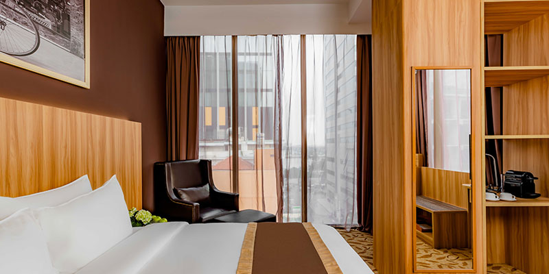 Dẫu tọa lạc giữa nơi sầm uất, Bay Hotel vẫn giữ được sự tĩnh lặng riêng – tựa như một “ốc đảo thư giãn” nơi bạn có thể đặt xuống mọi bộn bề sau một ngày dài.