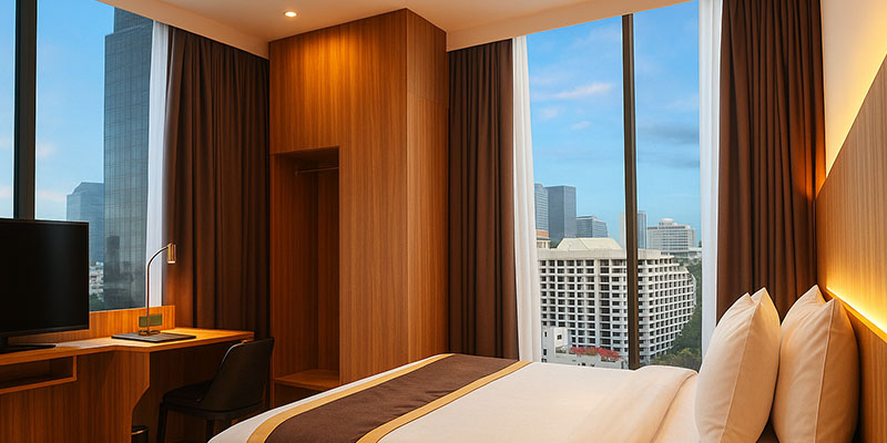 Dù nằm giữa trung tâm náo nhiệt, bên trong khách sạn lại là một thế giới hoàn toàn khác: thanh tĩnh, thư thái và sang trọng. Đây là nơi lý tưởng để bạn tái tạo năng lượng, tận hưởng sự yên bình sau những giờ làm việc hay khám phá.