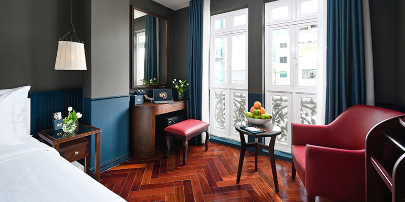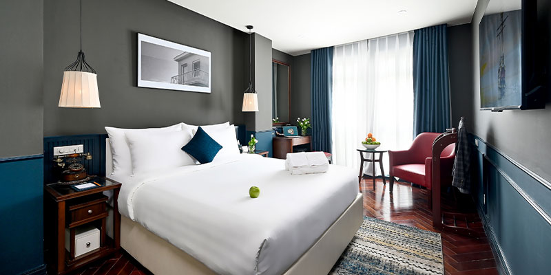 Hạng phòng Premier Double City View sở hữu diện tích 23m² – vừa đủ để mở ra một không gian riêng tư, thoáng đãng và ấm cúng. Phòng được trang bị giường đôi lớn, chăn ga cao cấp, nội thất tinh xảo và ánh sáng được bố trí khéo léo, tôn lên vẻ thanh lịch nhưng không kém phần hiện đại.
