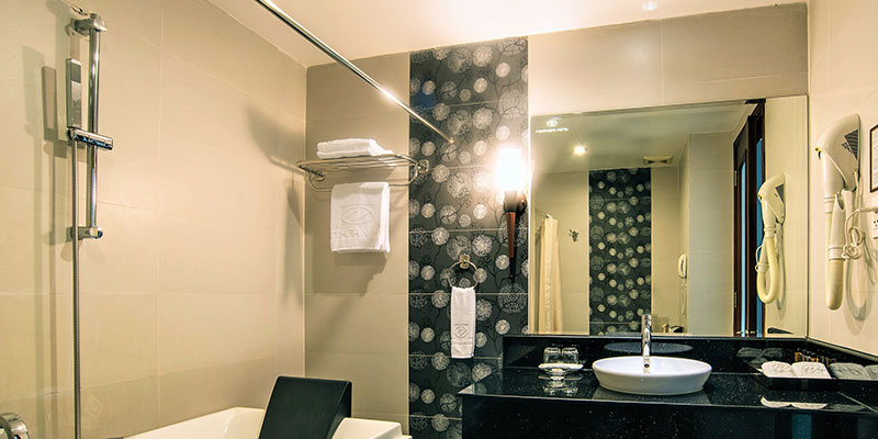 Căn phòng được trang bị đầy đủ tiện nghi hiện đại: TV thông minh, minibar, két sắt, bàn làm việc, phòng tắm riêng với bồn tắm sang trọng và các vật dụng cao cấp – tất cả nhằm mang đến cho bạn một trải nghiệm nghỉ dưỡng hoàn hảo và đẳng cấp.