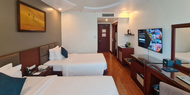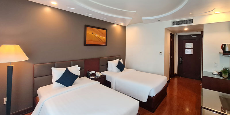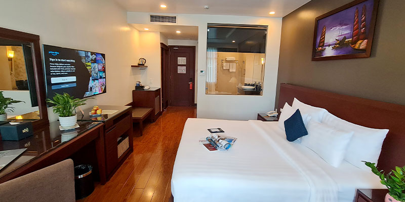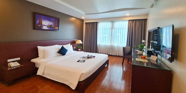 Toàn bộ phòng được trang bị các tiện nghi hiện đại như TV thông minh, minibar, két an toàn, bàn làm việc và phòng tắm riêng với nội thất cao cấp. Từng đường nét, màu sắc và ánh sáng đều được sắp đặt khéo léo, tạo nên không gian hài hòa – vừa sang trọng, vừa gần gũi, giúp bạn có thể thả lỏng cơ thể và tận hưởng từng khoảnh khắc yên bình.