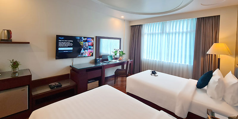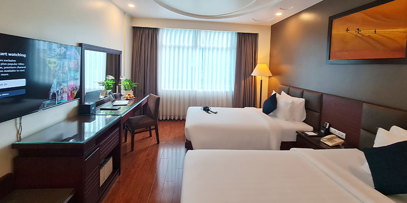 Bước vào phòng Premier Window (26m²), du khách sẽ ngay lập tức cảm nhận được sự ấm cúng và tinh tế trong từng chi tiết. Căn phòng được thiết kế với Double hoặc Twin beds, phù hợp cho cả cặp đôi, bạn bè hay khách công tác. Ánh sáng tự nhiên len qua khung cửa sổ rộng mở, mang đến cảm giác thư thái và tràn đầy sức sống giữa nhịp đô thị sôi động.