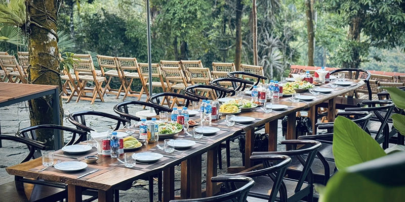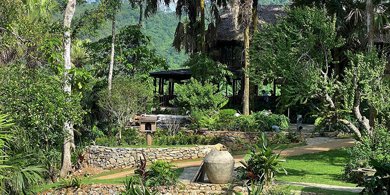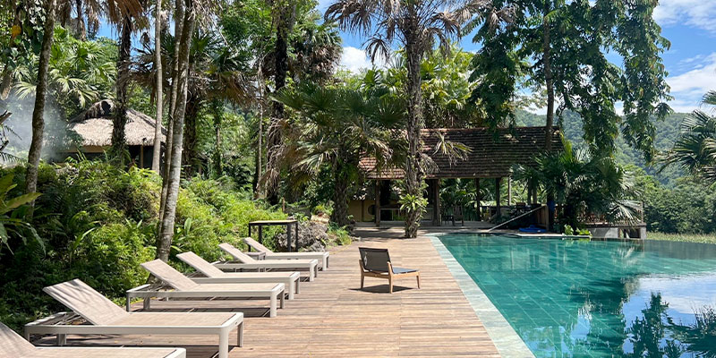 Cọ Retreat không chỉ là nơi để nghỉ, mà còn là hành trình để bạn chạm vào vẻ đẹp nguyên bản của núi rừng và văn hóa bản địa. Nằm nép mình giữa đại ngàn Đà Bắc, resort được thiết kế theo phong cách truyền thống của người Thái trắng, sử dụng vật liệu tự nhiên như tre, gỗ, lá cọ – tạo nên không gian mộc mạc, gần gũi mà vẫn tinh tế.