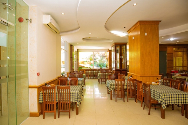 Nhà hàng của khách sạn rộng rãi, sang trọng và tinh tế phục vụ du khách nhiều phong cách thưởng thức: từ ẩm thực Á, đến Âu, Hoa.