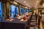 Nhà hàng của du thuyền Alisa được chế biến đa dạng các món ăn hảo hạng theo phong cách châu Âu và châu Á trong một khung cảnh ấm cúng và thân mật đậm chất Việt. Thực đơn nhà hàng đa dạng, đặc biệt nhà hàng có phục vụ bữa tối BBQ gồm các loại hải sản chỉ có ở Hạ Long mà bạn chắc chắn không thể bỏ qua. Quầy bar phục vụ nước hoa quả, cocktail đầy màu sắc với những hương vị độc đáo, rượu vang thượng hạng mang đến những trải nghiệm đẳng cấp cho du khách.