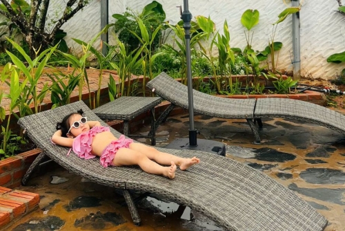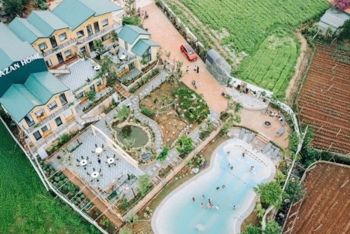 Không gian riêng tư, sân vườn rộng, hồ bơi và khu bếp chung giúp mọi người vừa tận hưởng không khí Mộc Châu, vừa gắn kết trong từng hoạt động.