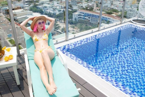 Một trong những tiện ích nổi bật của khách sạn chính là hồ bơi ngoài trời tại tầng thượng với góc nhìn trọn cảnh thành phố. Không gian lý tưởng này cho phép du khách tận hưởng ánh nắng nhẹ nhàng ban ngày hay thư giãn trong làn nước sau hành trình khám phá.