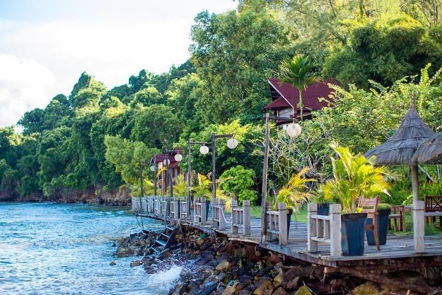 Nhà hàng phục vụ các món ăn Âu Á, vô vàn loại thức uống và cocktail phong phú. Du khách có thể thưởng thức hải sản với bếp nướng tại chỗ hay tự do lựa chọn hải sản tươi từ đảo. Đặc biệt, mỗi đêm, ban nhạc quốc tế người Philippin sẽ phục vụ cho tất cả du khách từ 7h30 đến 11 giờ tối.