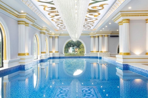 Ấn tượng với phong cách cổ điển tựa lâu đài, bể bơi nước mặn bốn mùa cho cảm giác mát lành mùa hạ, ấm áp ngày đông, như đang đắm mình trong nguồn suối nóng Mường Lèo từ vùng núi cao Sơn La. Giải tỏa mệt mỏi, thả lỏng cơ thể - tâm trí để nạp lại năng lượng cho hành trình tiếp theo.